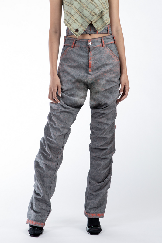 Pantalone dalla struttura arricciata con Eco-resina solubile