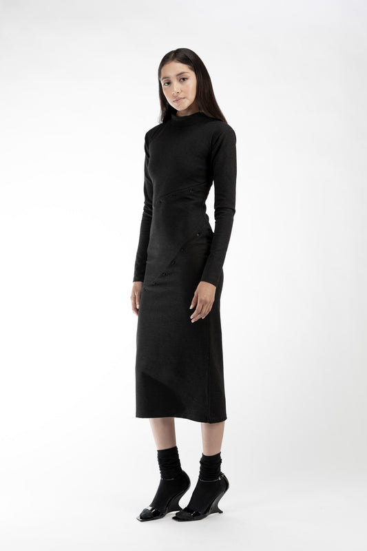 Gonna midi in lana trama verde e nera con fodera a vista azzurra