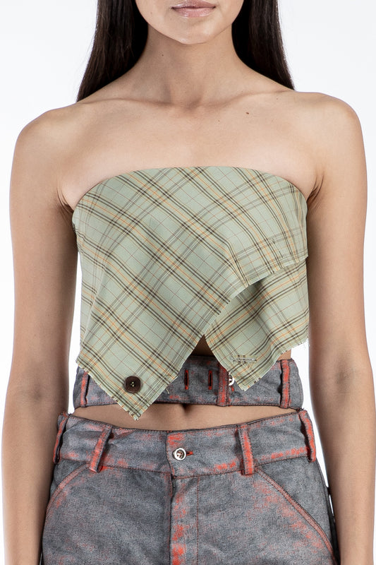 Blazer con cintura in lana trama verde e nera con fodera a vista su manica