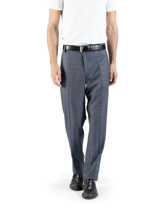 Pantalone dritto in lana grigio con piega stirata fantasia a quadri