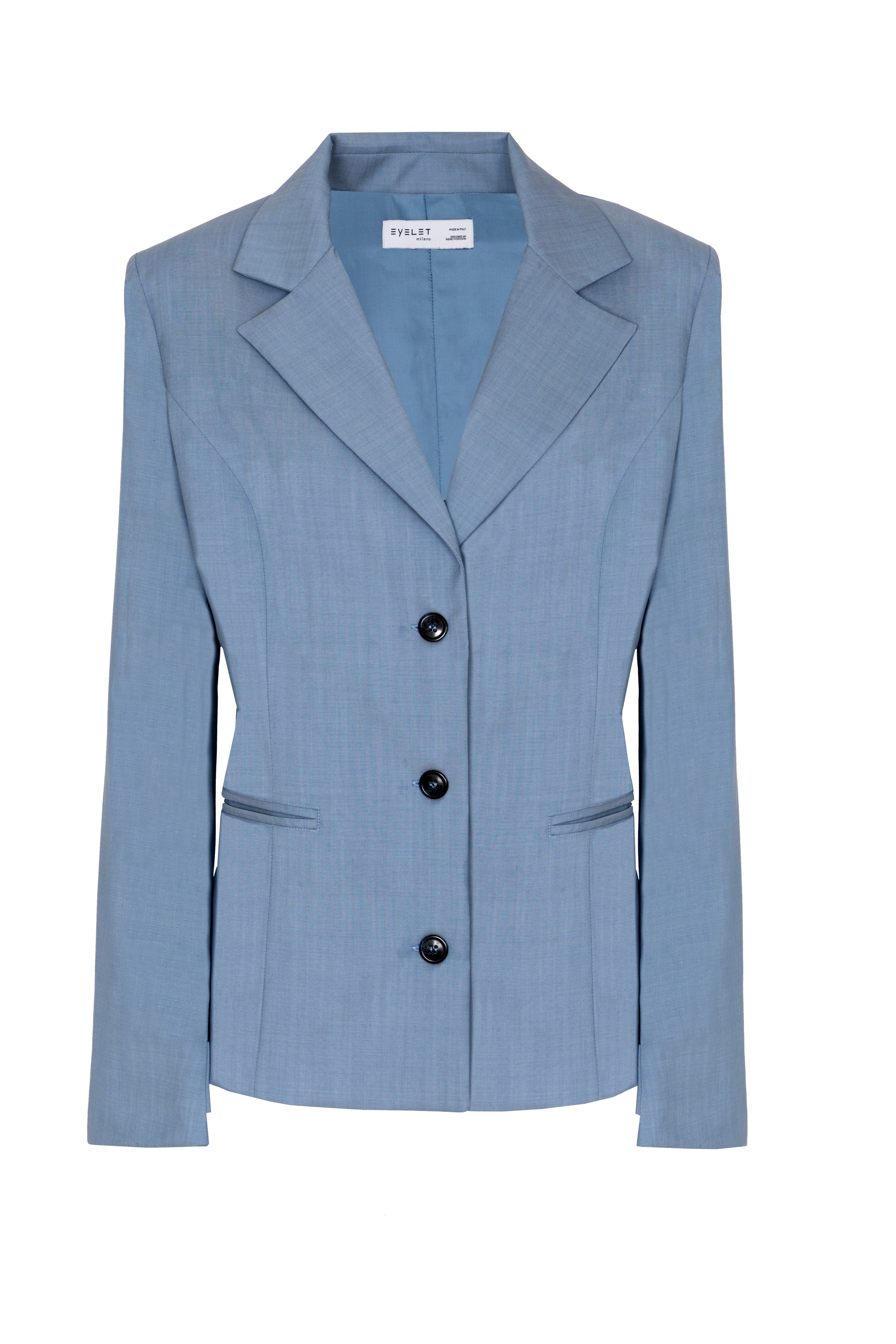 Blazer princess in lana con martingala regolabile azzurro ceruleo