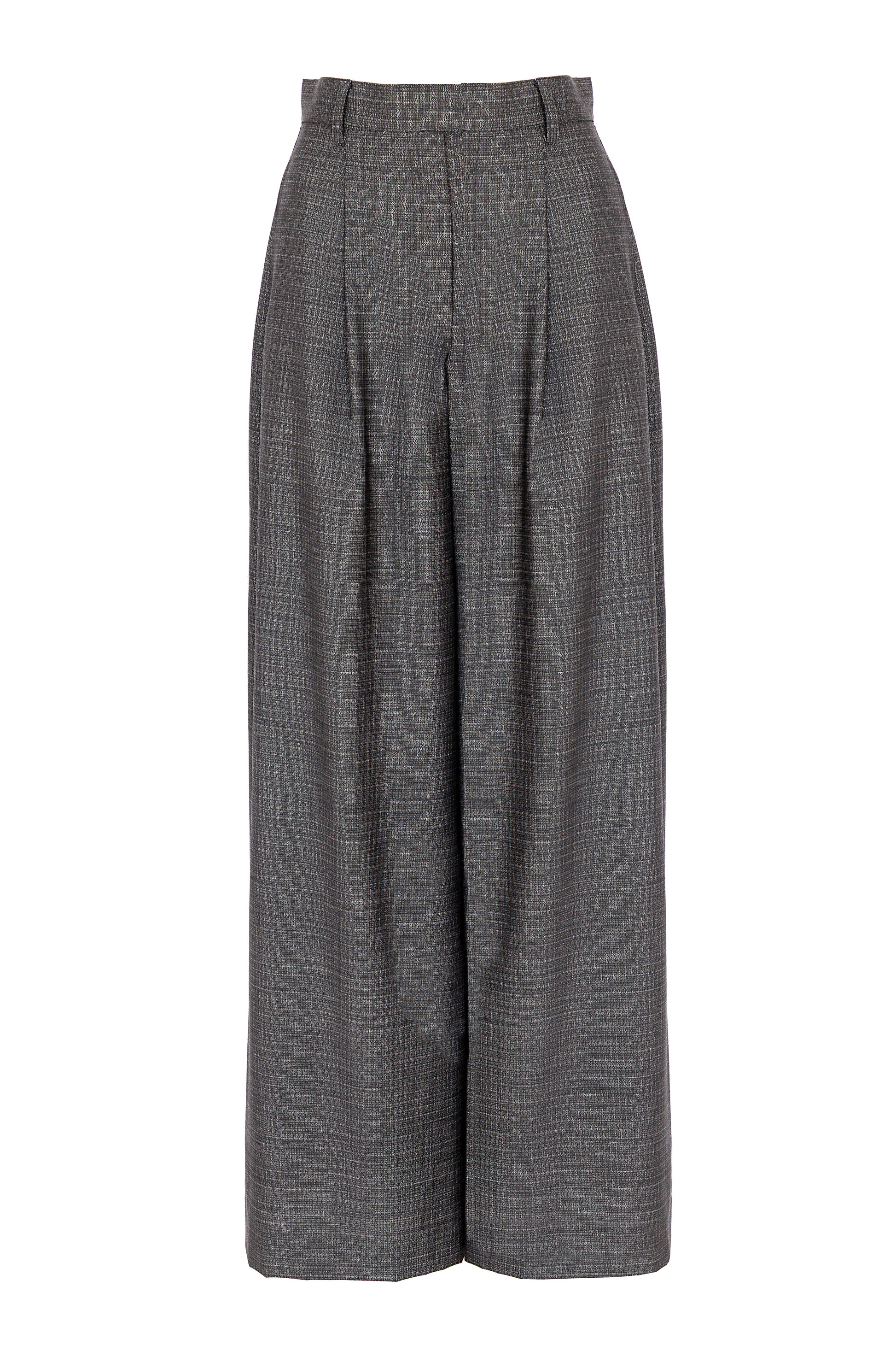 Pantalone a palazzo con tasche laterali e tasche posteriori a filetto. Ampio fondo e passanti per cintura in vita. Chiusura con zip coperta e gancetto. Realizzato in 100% lana. Moderno e raffinato, è un capo versatile che si adatta sia ad occasioni formali che casual.