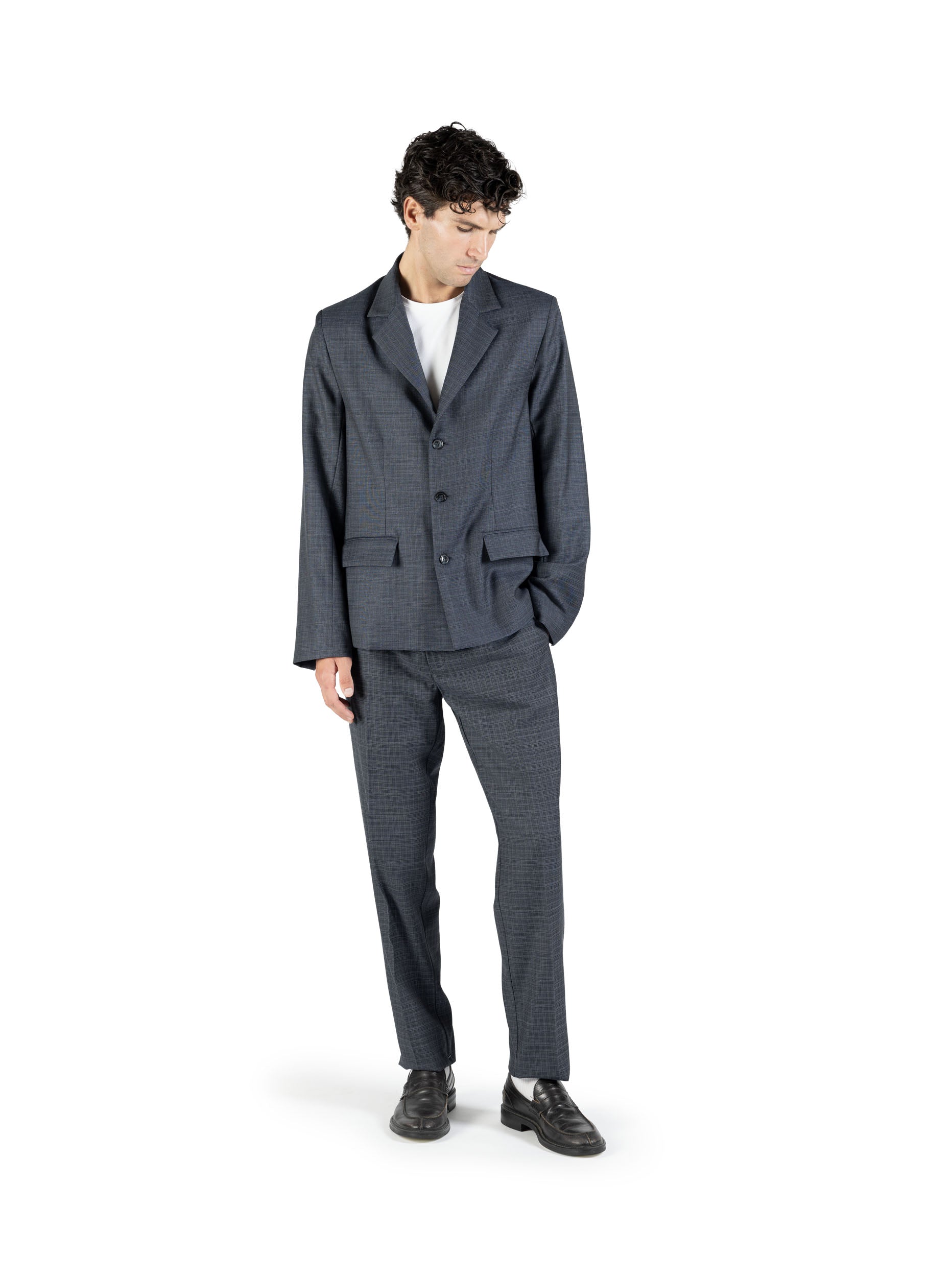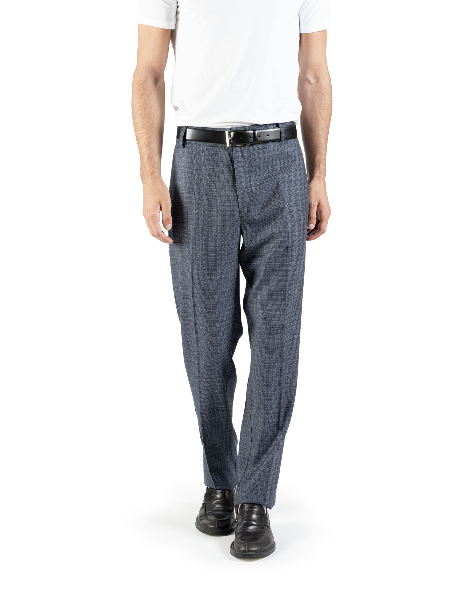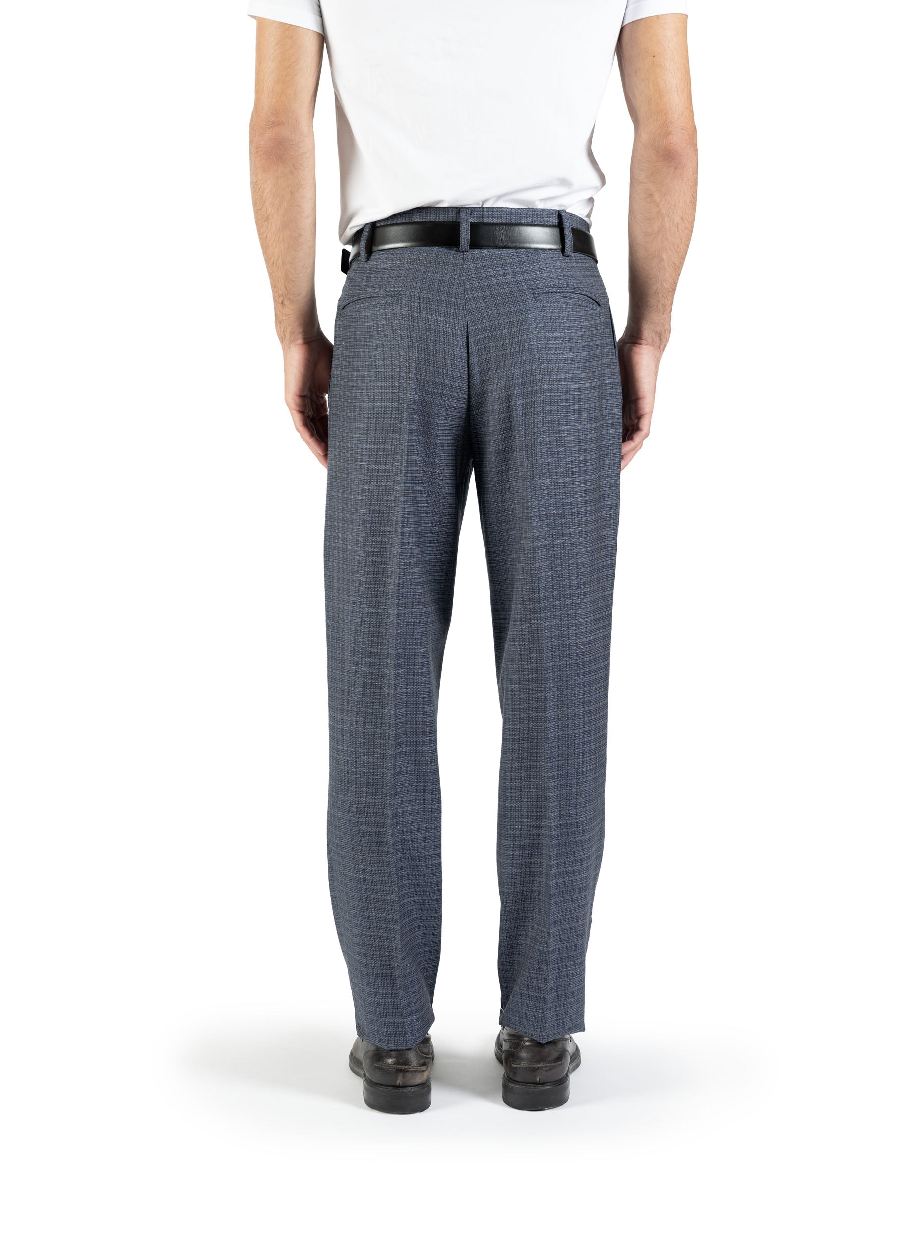 Pantalone dritto con piega stirata in lana trama blu e bianco