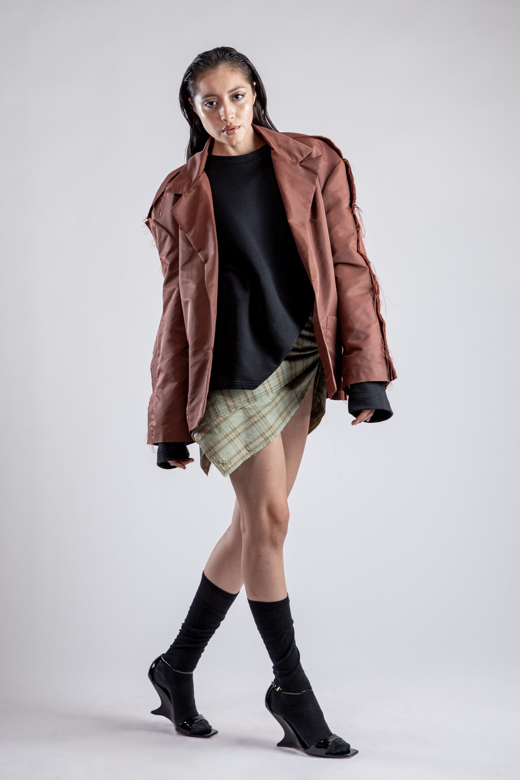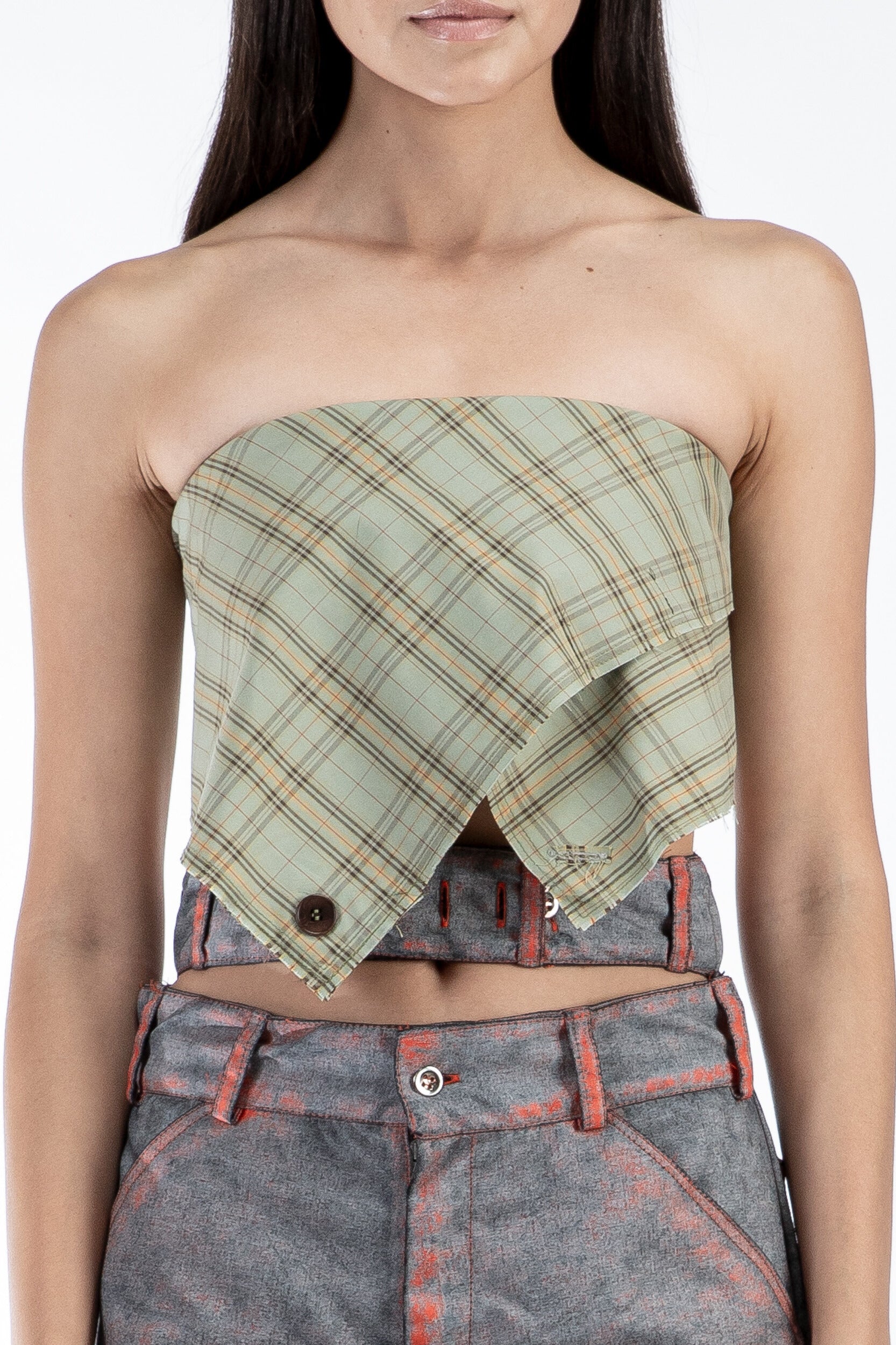 Nulla è come sembra, tutto può diventare altro attraverso la sperimentazione. Questo foulard ti esorta a non fermarti alle apparenze e a scoprirne la versatilità. A metà tra un accessorio ed un capo, grazie al suo design multiuso può facilmente essere trasformato in un top, una bandana e per i più ribelli anche in una gonna. Il dettaglio del bottone laterale e le cuciture sfrangiate aggiungono sfrontatezza al pezzo, rendendolo un must have del tuo guardaroba.