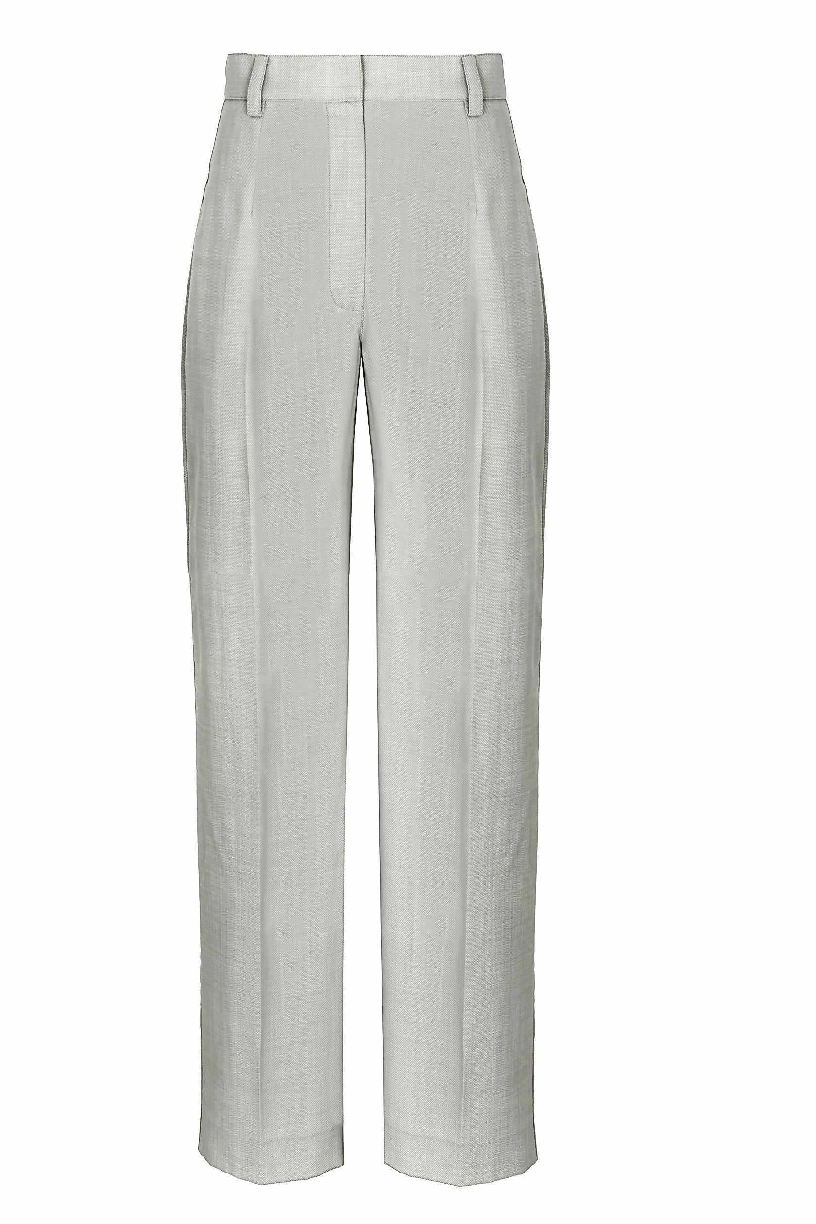 Pantalone dritto in lana con piega stirata grigio chiaro